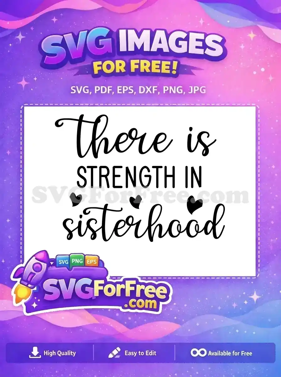 Complimentary text design: “There is strength in sisterhood” with decorative underline and small heart accents.