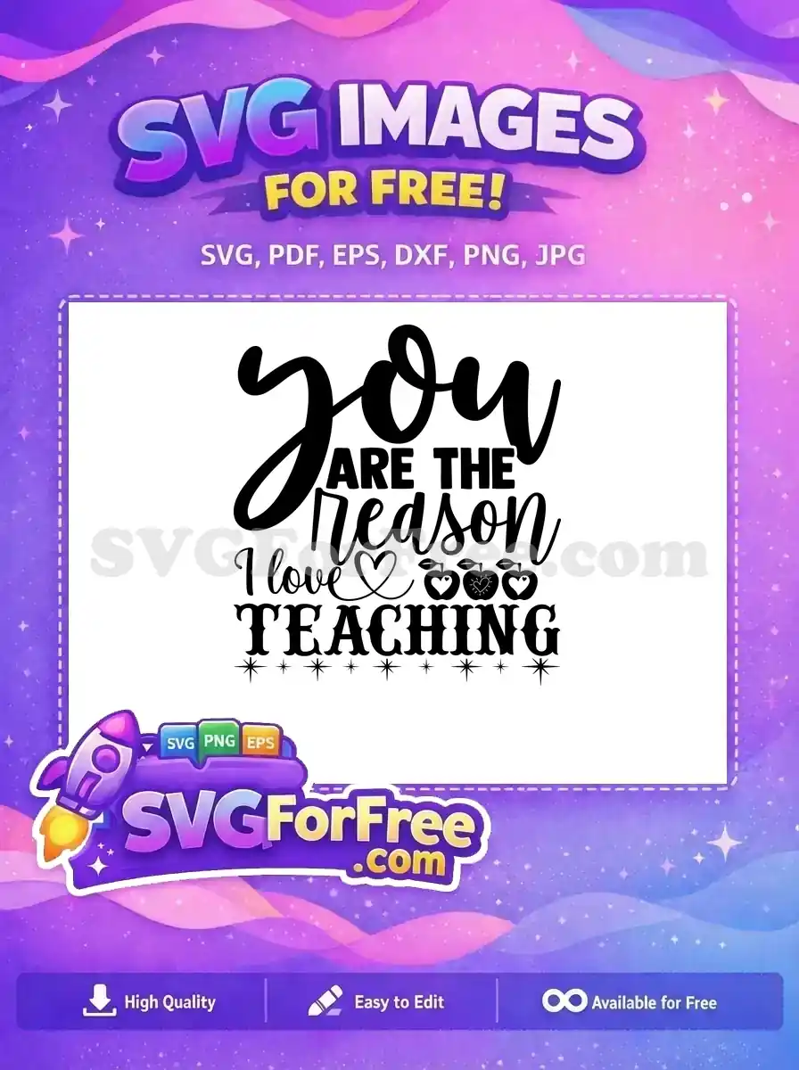 You Are The Reason I Love Teaching quote with hearts, free heartfelt SVG.