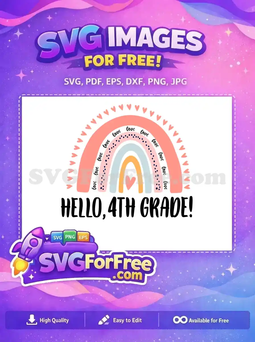Free Hearts Rainbow Free Love Hello 4th Grade Free SVG – Instant Download