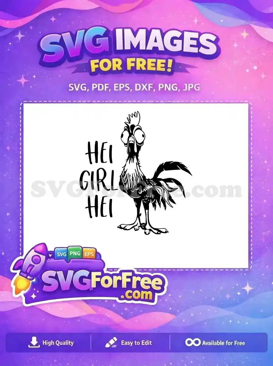 Heihei the rooster from Moana looking goofy with “HEI GIRL HEI” text. A fun, free downloadable graphic.