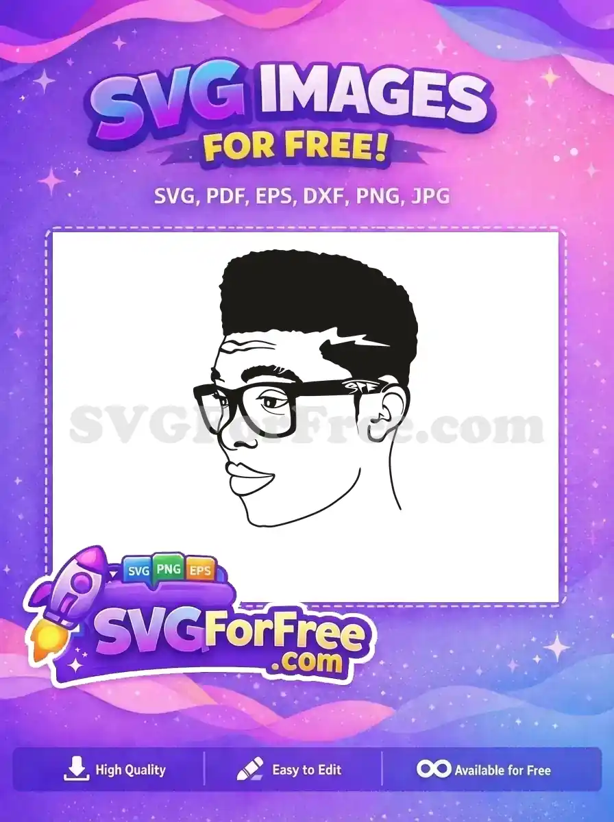 Free High Top Fade Free Thick Glasses Afro American Cartoon Free SVG – Instant Download