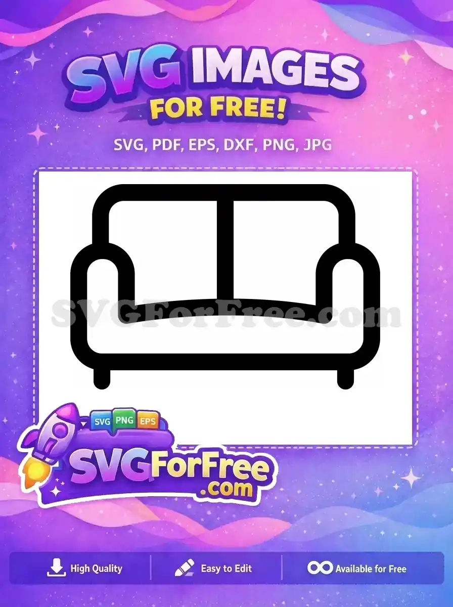 A bold line art icon of a two-cushion loveseat with a thick, continuous outline. A free furniture graphic.