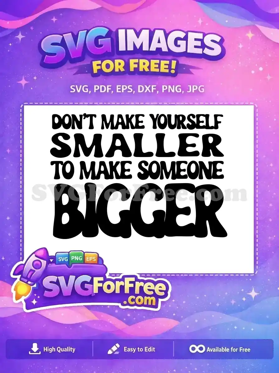 A free design that states ‘DON’T MAKE YOURSELF SMALLER TO MAKE SOMEONE BIGGER’ with emphasized keywords.
