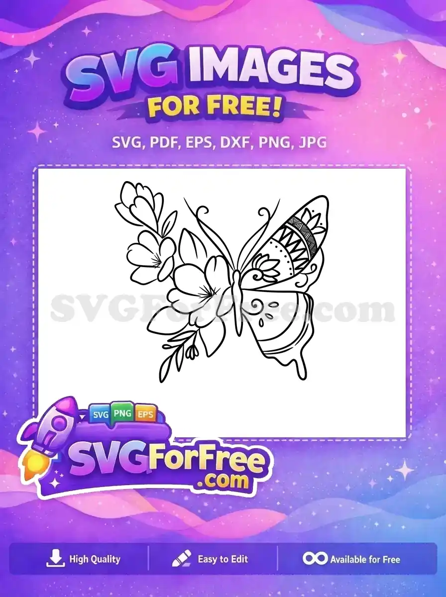 Free Intricate Butterfly Design Free Floral Elements Cute Butterflies Free SVG – Instant Download