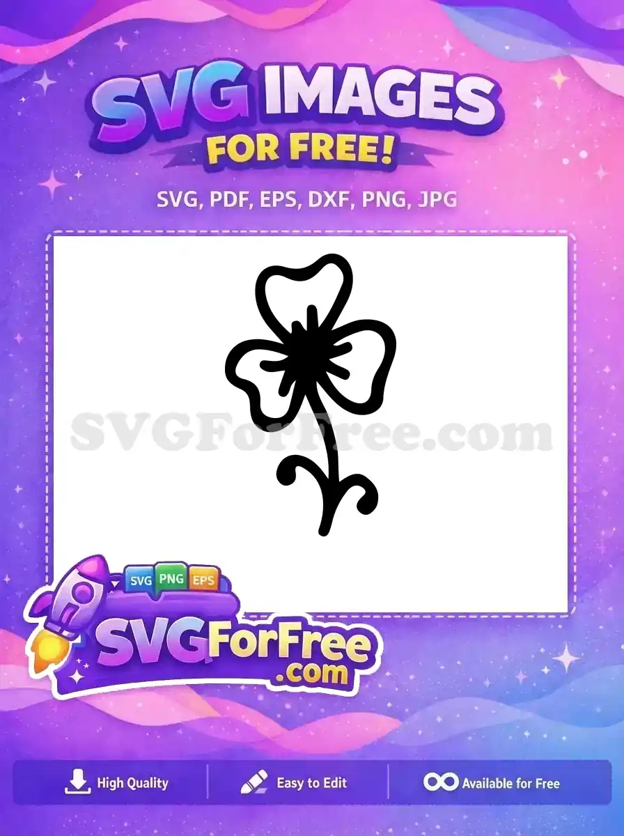 A simple flower with four rounded petals and a solid black center on a whimsical stem. A cute free design.