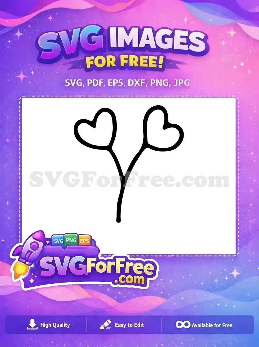 A pair of simple, outlined hearts on their own delicate, slightly curved stems. A sweet free graphic.