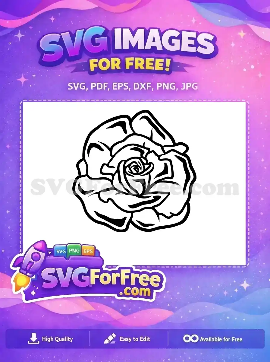 Elegant black outline of a blooming rose, available as a free artistic vector.