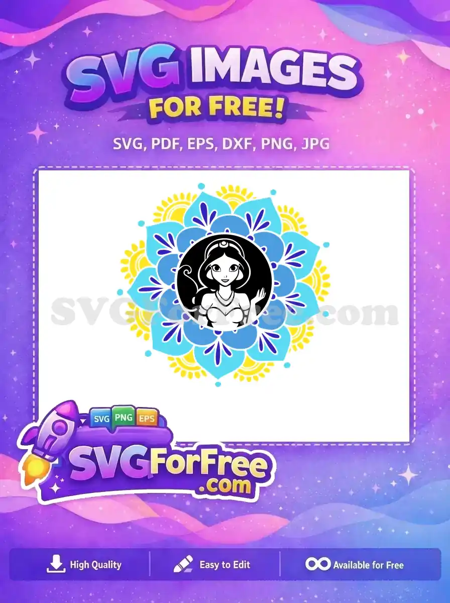 Free Jasmine Starbucks Free Blue Yellow Mandala Aladdin Free SVG – Instant Download
