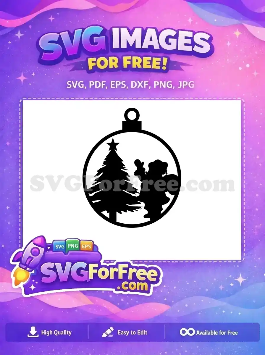 Download this free design featuring a jolly Santa and festive tree in an ornament shape, perfect for Christmas crafts.