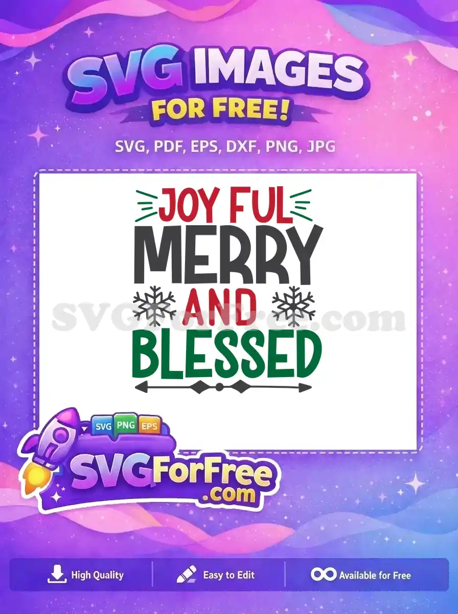Free Joyful Merry Blessed Free Snowflake Christmas Quote Free SVG – Instant Download