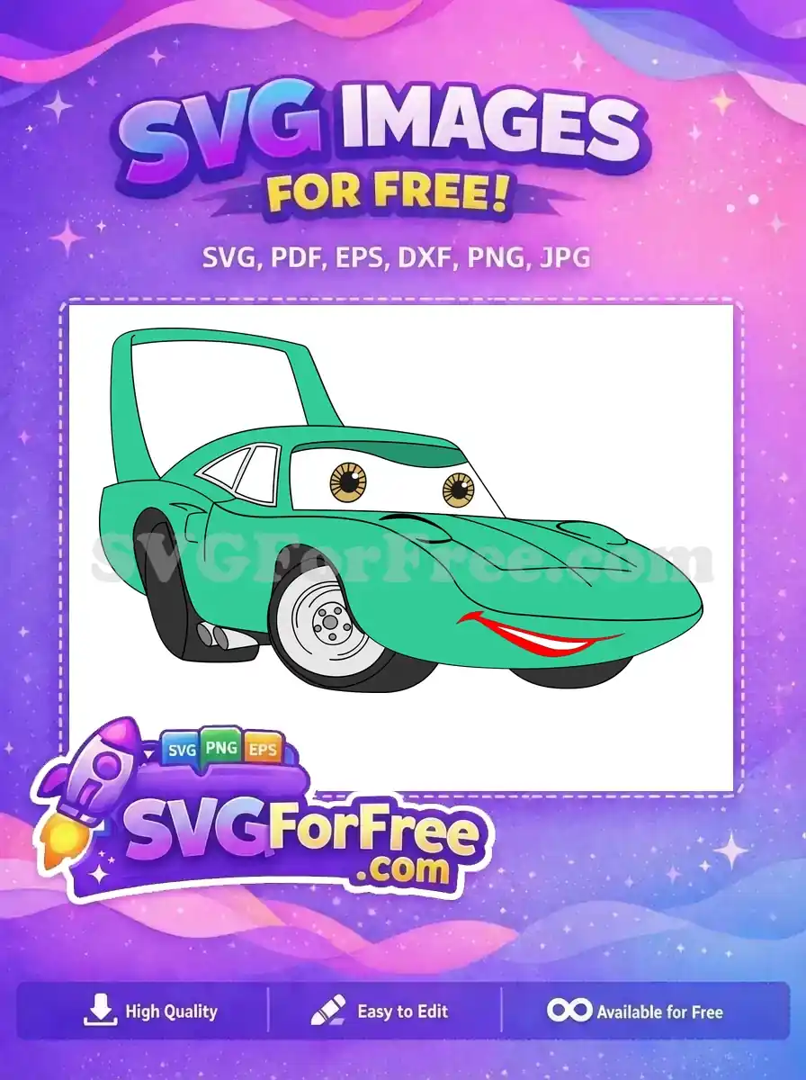 Free The King Weathers Free Teal Car Big Spoiler Cars Movie Free SVG – Instant Download
