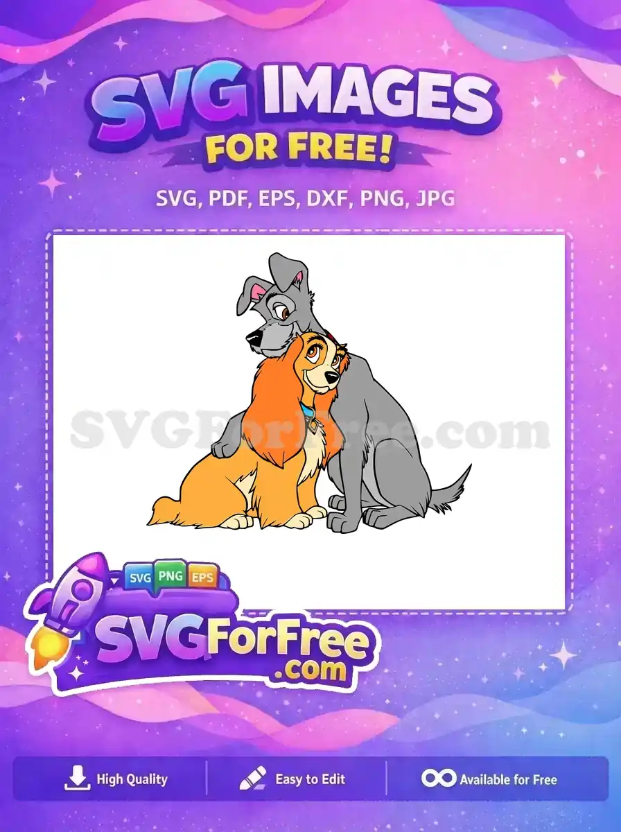Free Lady Affectionate Free Tramp Hug Lady and the Tramp Free SVG – Instant Download