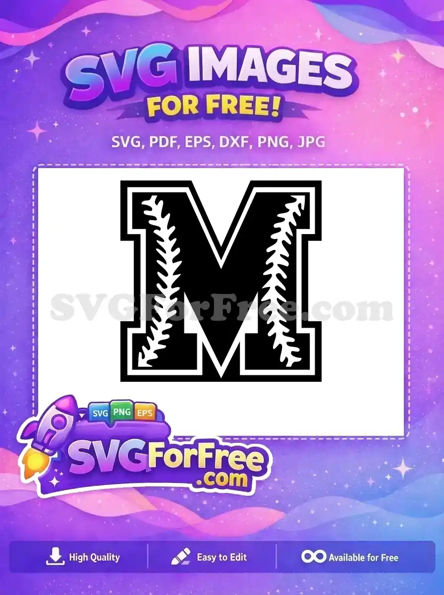 Discover this free baseball-themed ‘M’ SVG design, perfect for sports teams, apparel, or personal projects. A truly versatile and free graphic asset for all your creative needs!