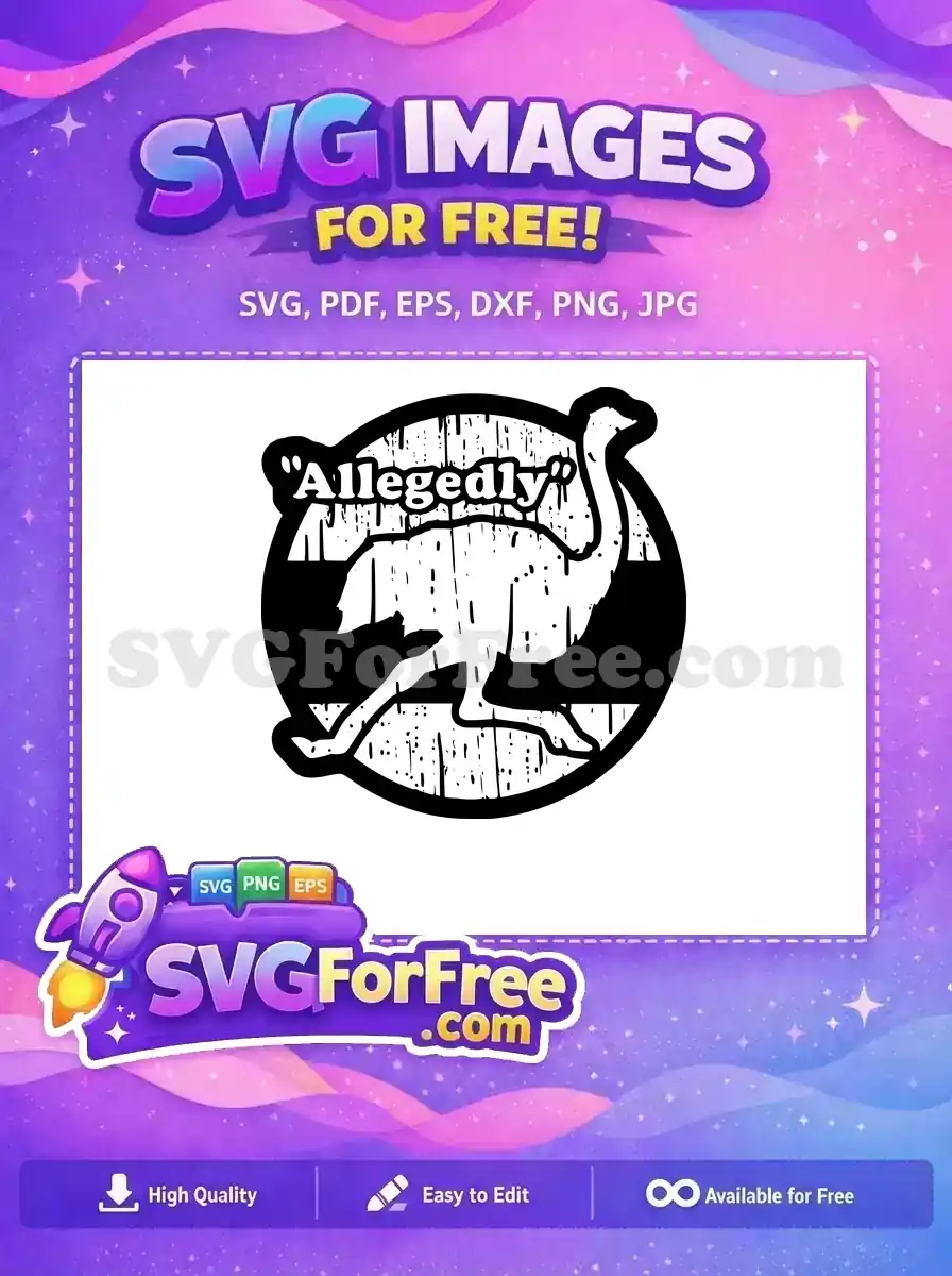 A circular, distressed-style logo of an ostrich with ‘Allegedly’ on a banner. A no-cost, rustic design.