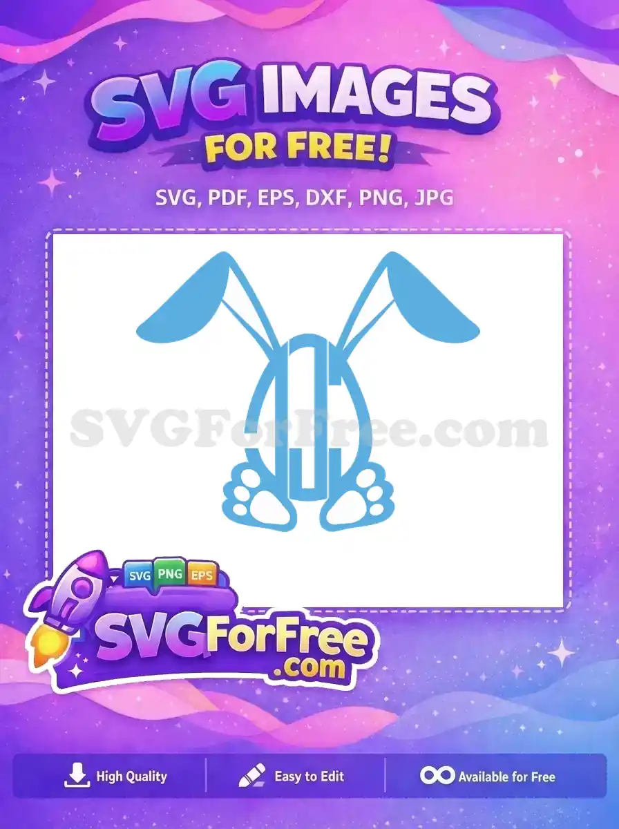 Blue bunny monogram frame with floppy ears, a free adorable vector for initials.