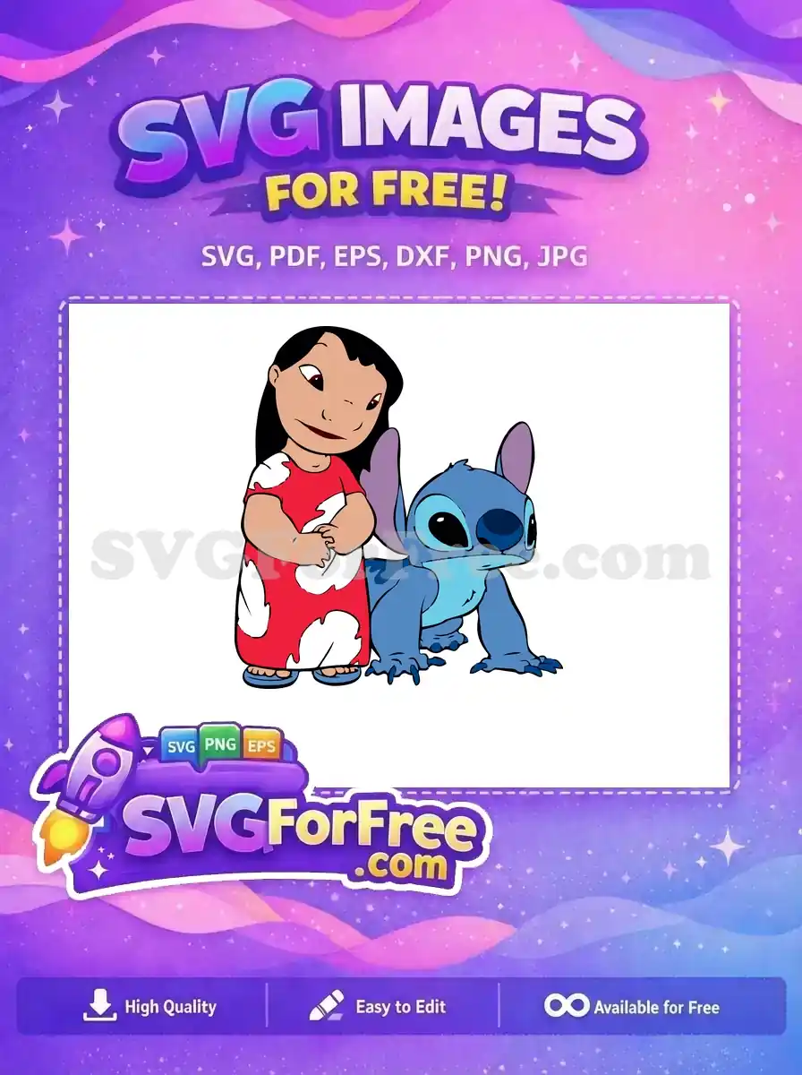 Lilo and Stitch standing together smiling, a heartwarming free duo vector.