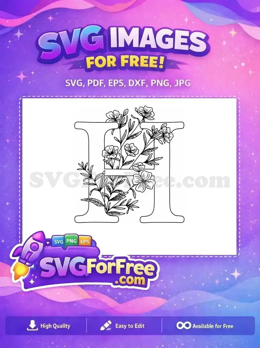 Free Line Art Alphabets Free Flower Design Initial Free SVG 10 – Instant Download