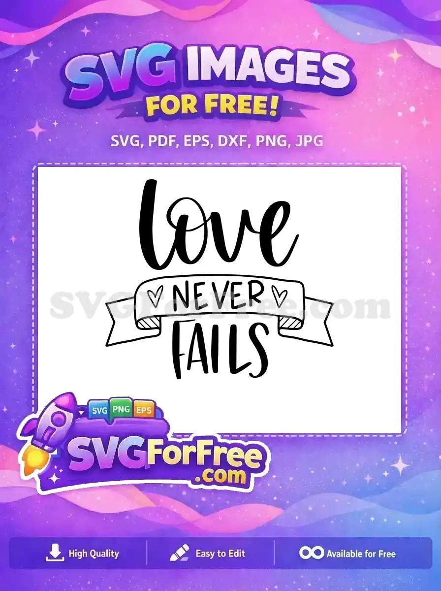 An inspirational free design with the phrase ‘love NEVER FAILS’ set inside a decorative banner.