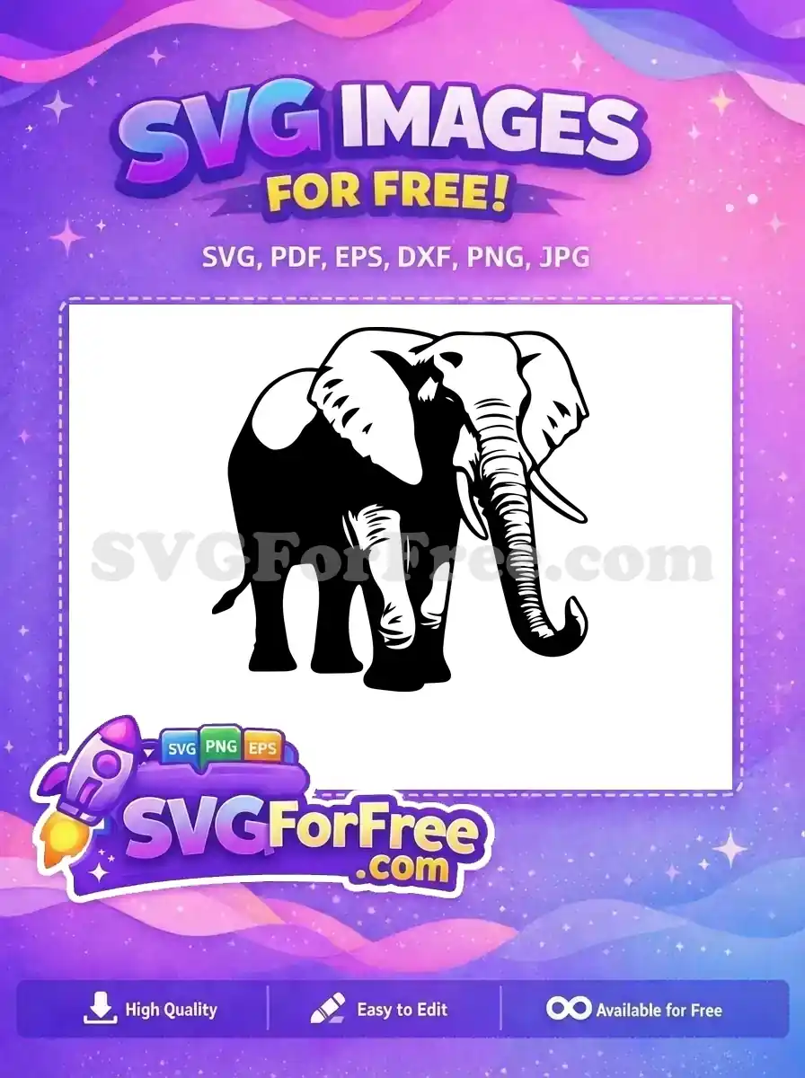 Free majestic black elephant Free powerful safari animal artistic outline Free SVG – Instant Download