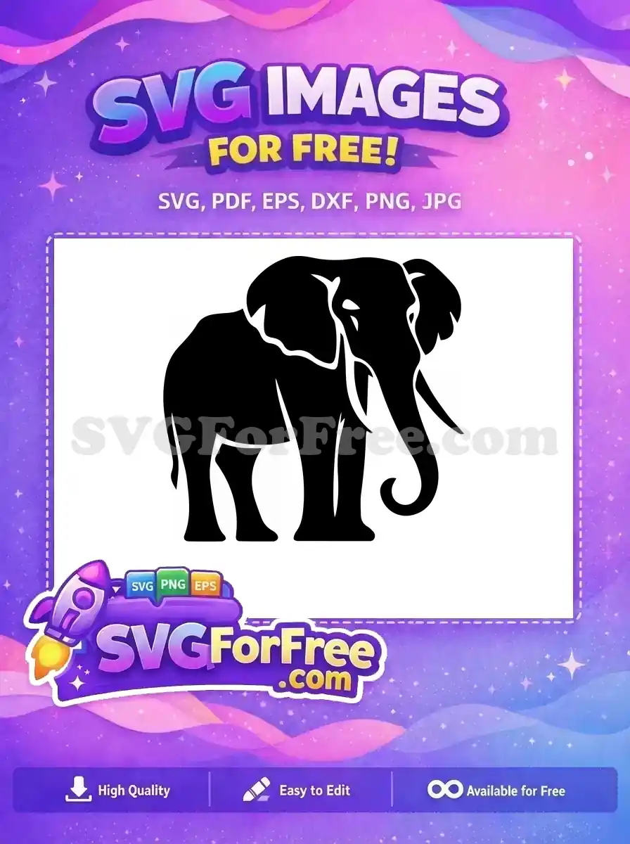 Free Majestic Black Elephant Head Free Trunk Design Wildlife Free SVG – Instant Download