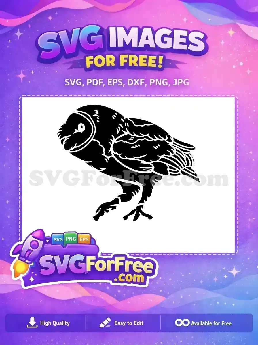 Free Majestic Black Owl Silhouette Free Detailed Feathered Wings Free SVG – Instant Download