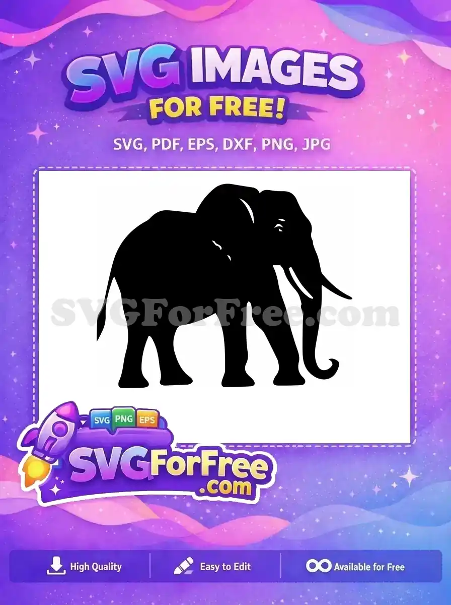 Free Majestic Elephant Free Black Silhouette Wildlife Art Free SVG – Instant Download