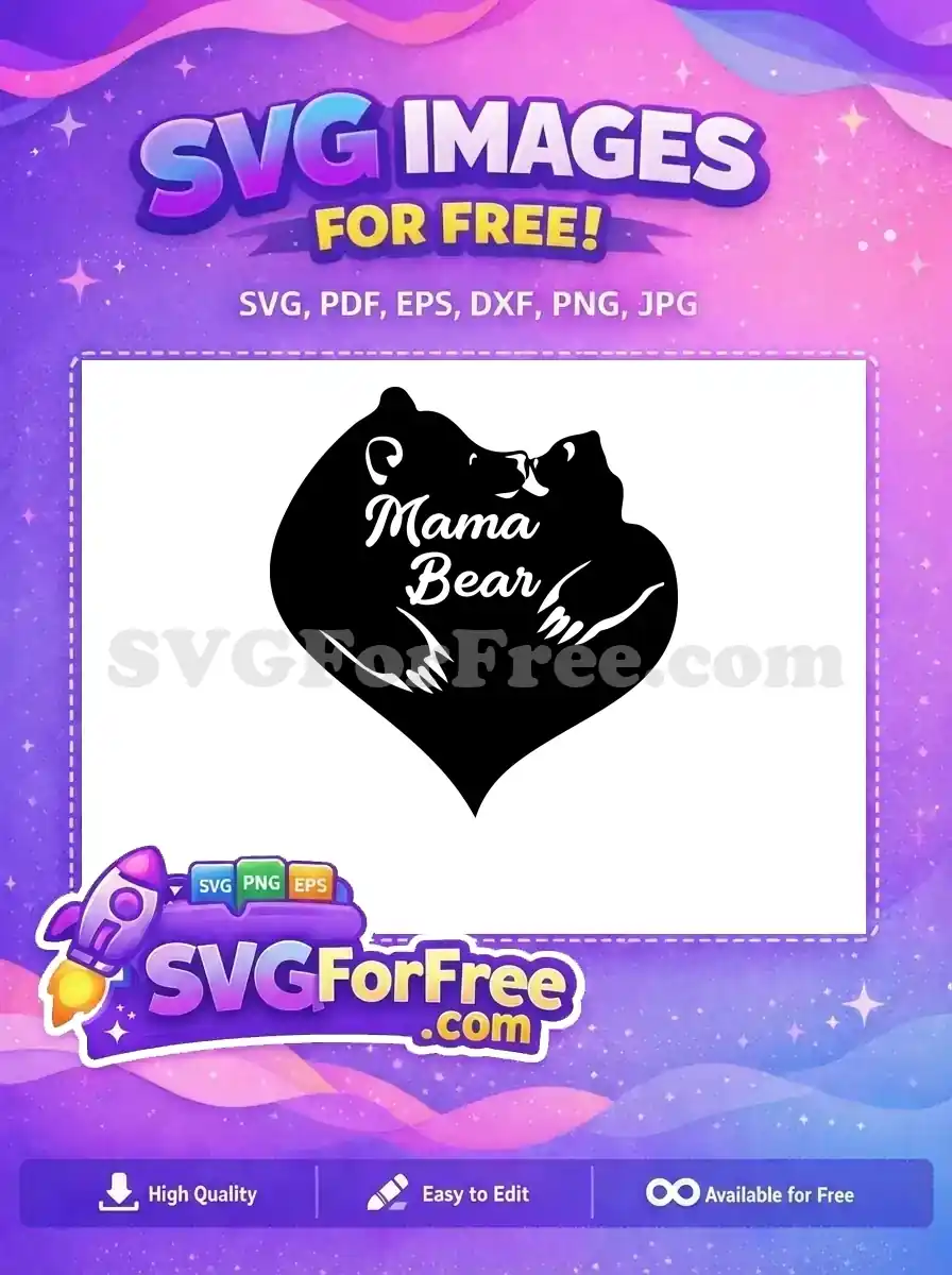 Free Mama Bear Kissing Cub Free Heart Silhouette Mom Quote Free SVG – Instant Download