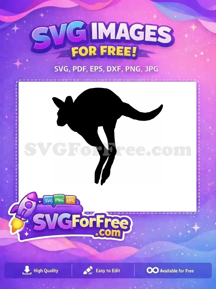 An athletic kangaroo captured mid-bound with its legs fully extended in a powerful jump. A free silhouette.