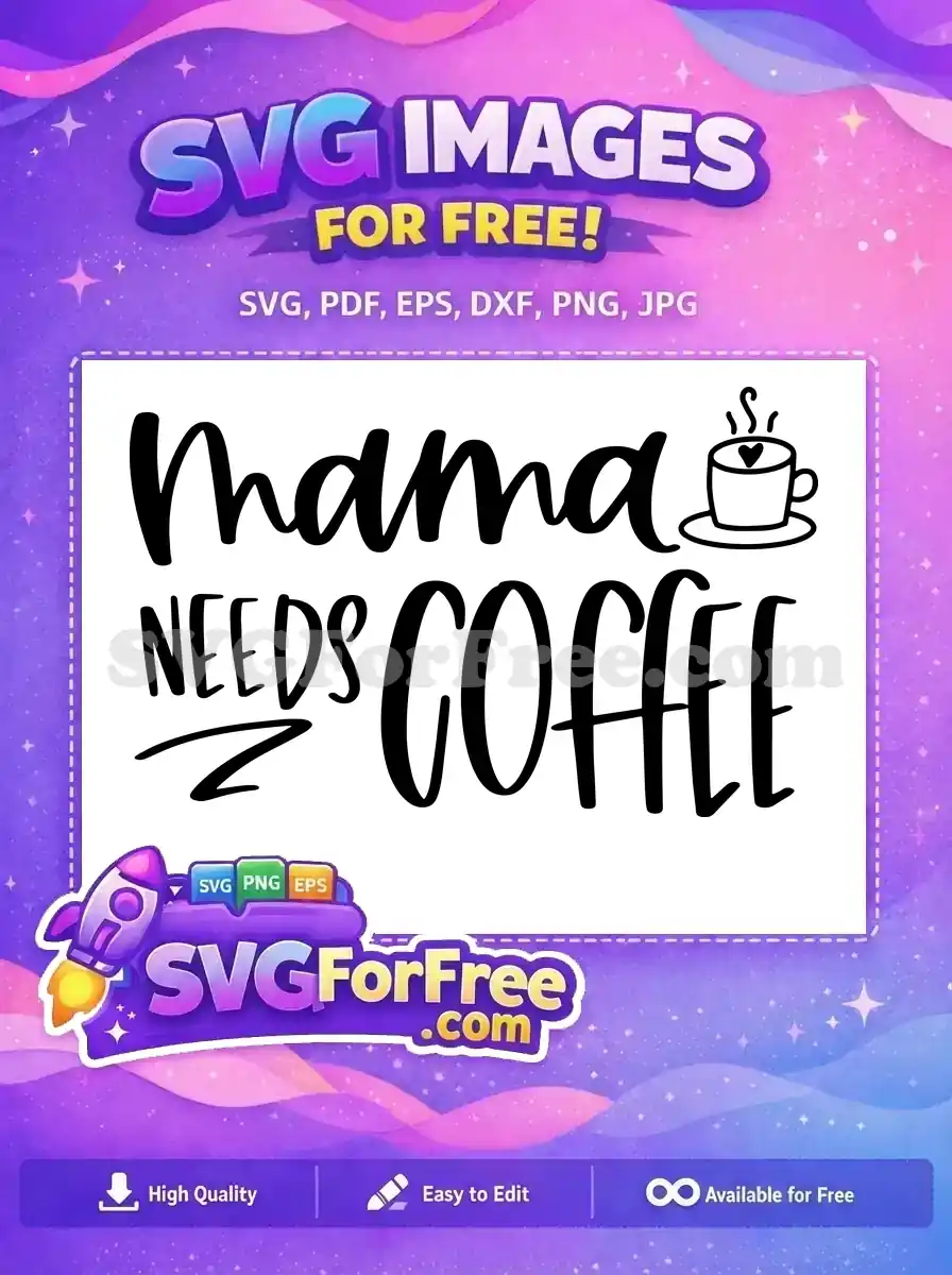 Free Mama Needs Free Coffee Quote T-shirt Free SVG – Instant Download