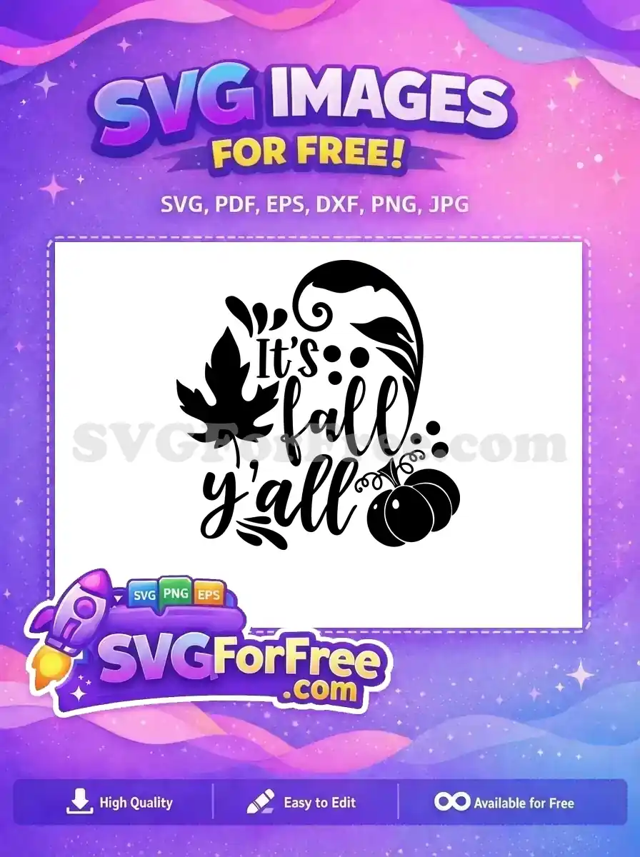 Fun ‘It’s Fall Y’all’ phrase with pumpkin accents, a free graphic resource.