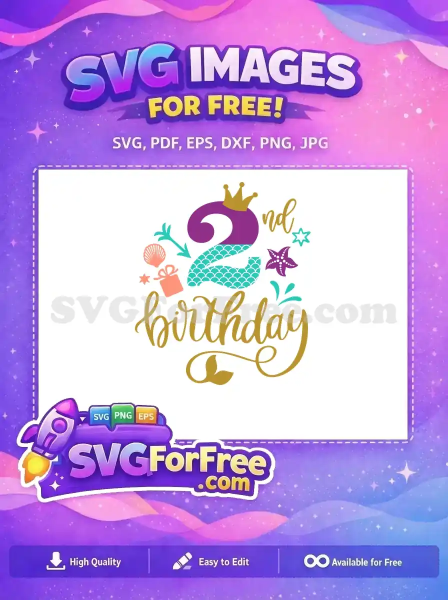 Celebrate a special second birthday with this enchanting free mermaid-themed design! Perfect for ocean-loving little ones.