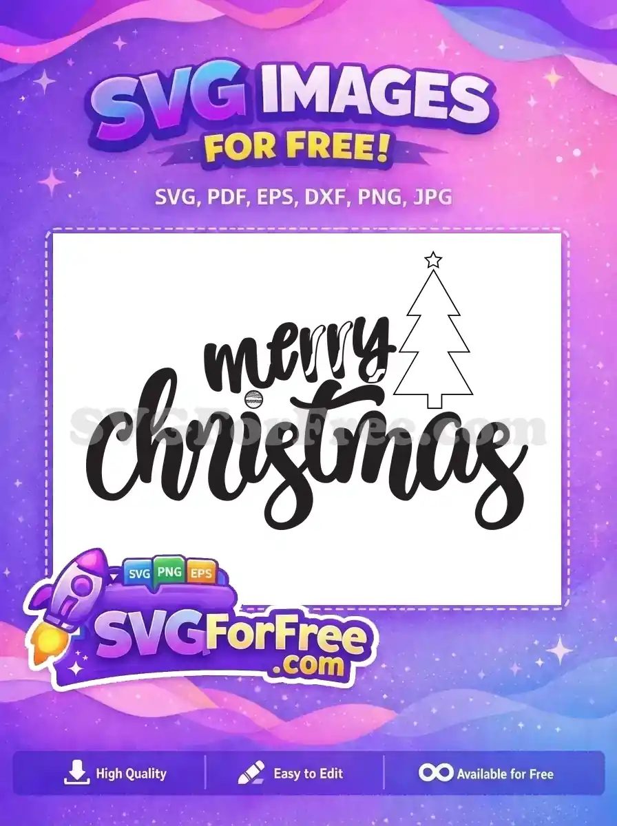 Free Merry Christmas Text Free Tree Line Holidays Free SVG – Instant Download