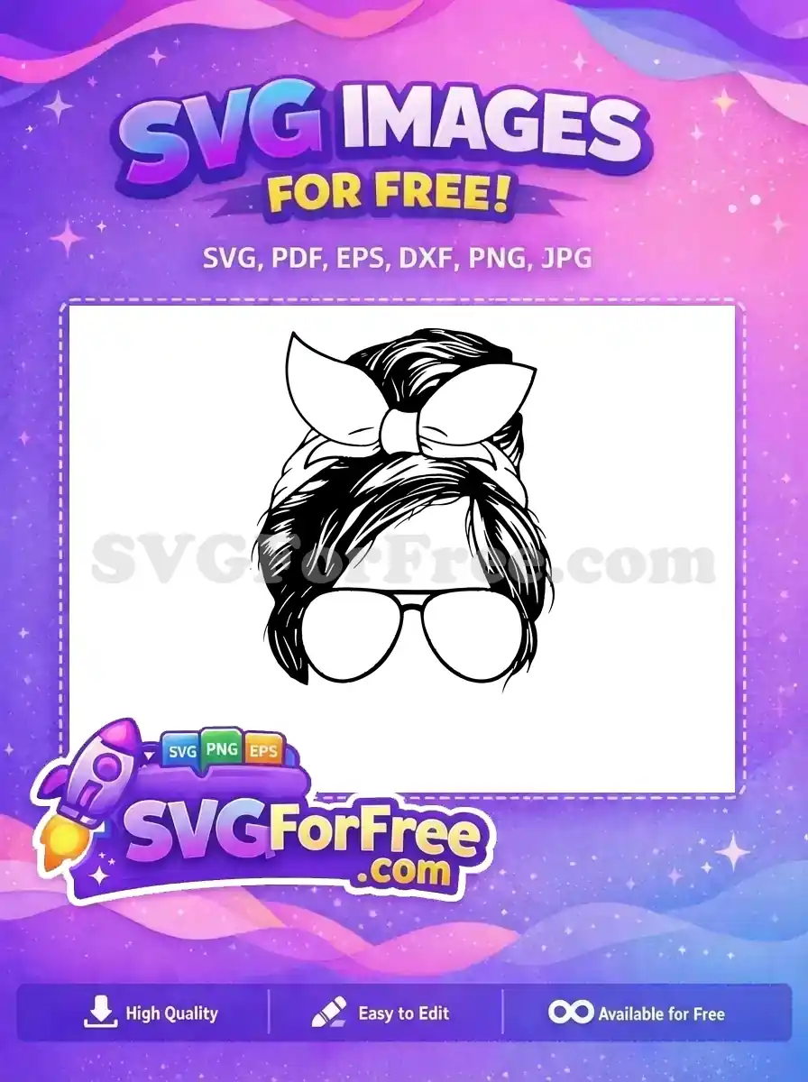 Free Messy Bun Free Glasses Silhouette With Bow Free SVG – Instant Download