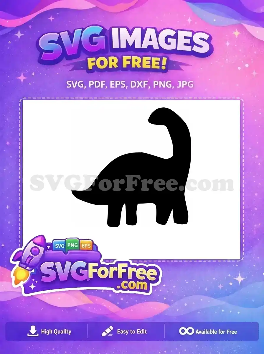 A charming, simplified silhouette of a Brontosaurus with a rounded body. A cute and free dino graphic.