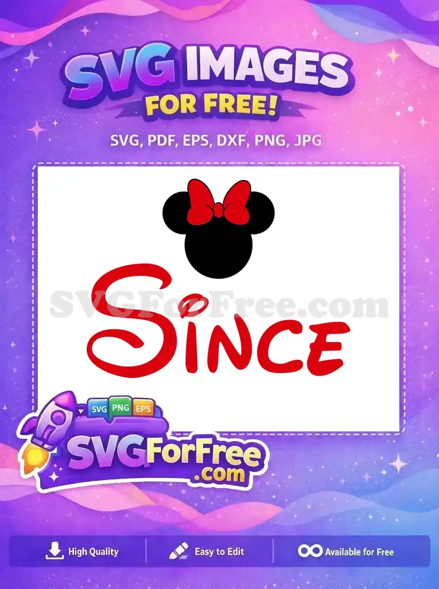 A “Since” text design in a classic font, paired with a small Minnie Mouse head with her bow. A great free file.