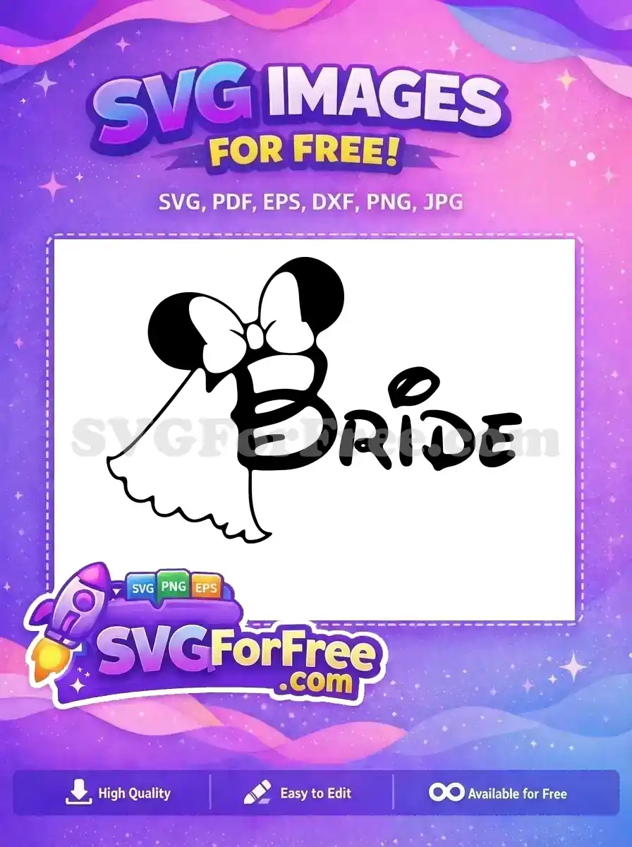 Free Minnie Mouse Bride Free Wedding Dress Bride Free SVG – Instant Download