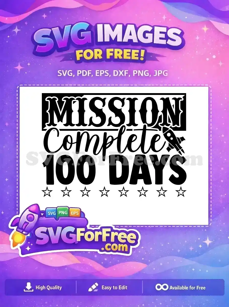 Celebrate 100 days achieved with this free ‘Mission Complete’ SVG. An inspiring free design for school, projects, and crafts.