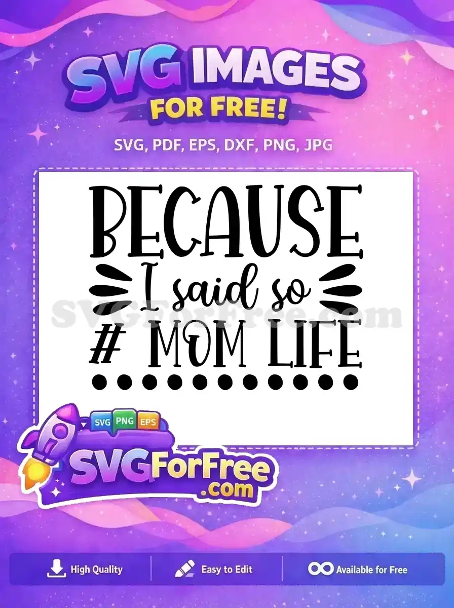 Humorous quote ‘BECAUSE I said so #MOM LIFE’ with dots, a free vector asset.