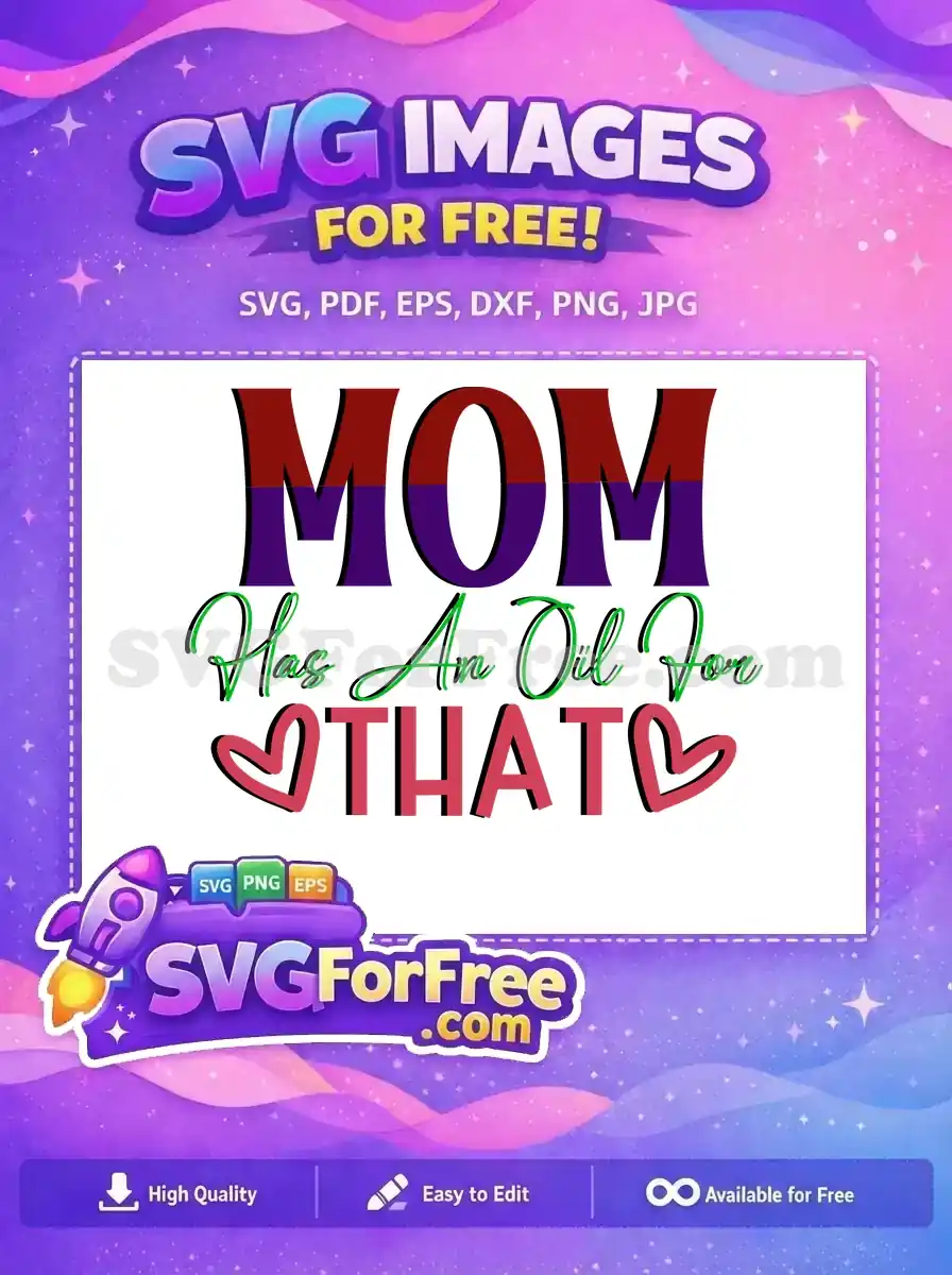 Essential oil themed quote ‘MOM Has An Oil For THAT’ with hearts, a free wellness vector.