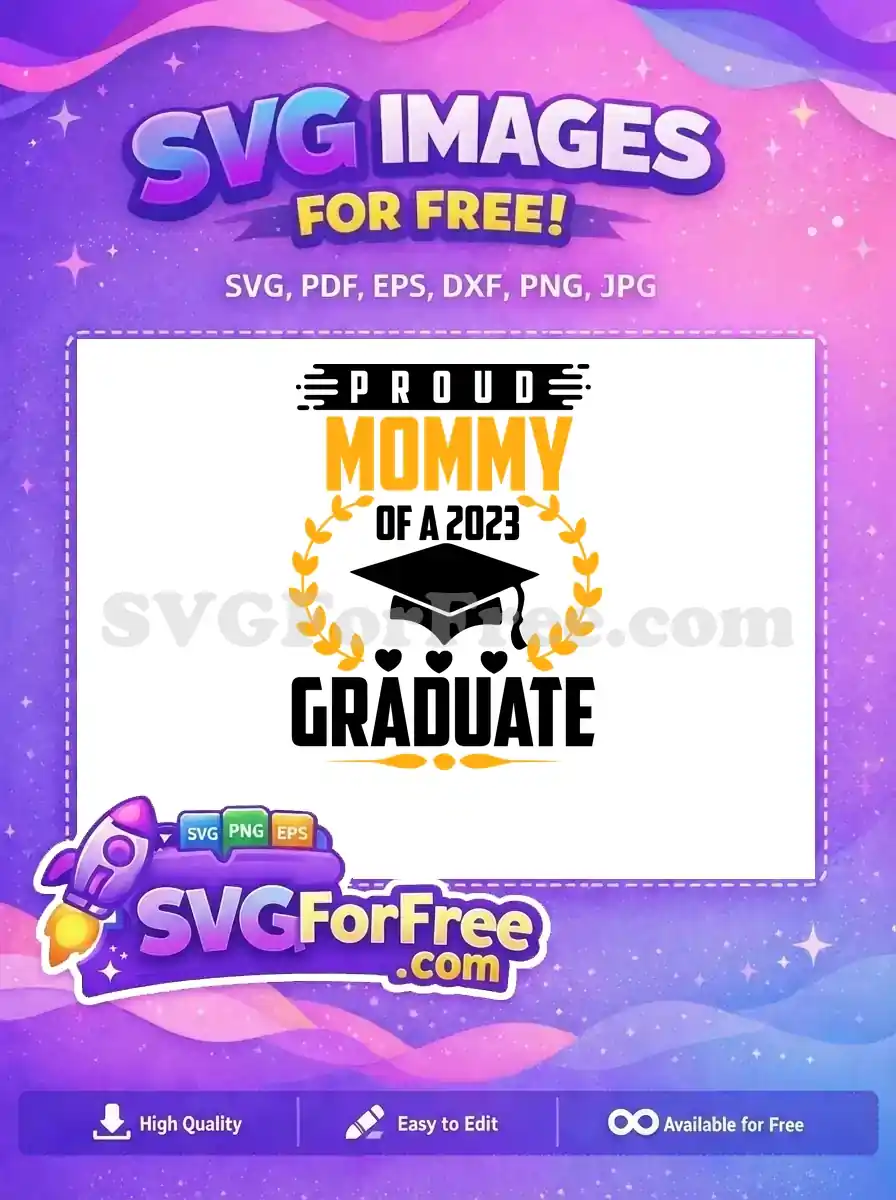 A ‘Proud Mommy of a 2023 Graduate’ design with cap and laurels. A sweet and free downloadable SVG.