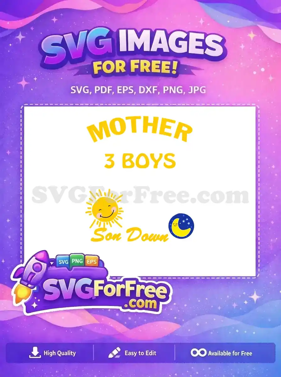 Free Mother 3 Boys Free Sun Moon Son Holidays Free SVG – Instant Download