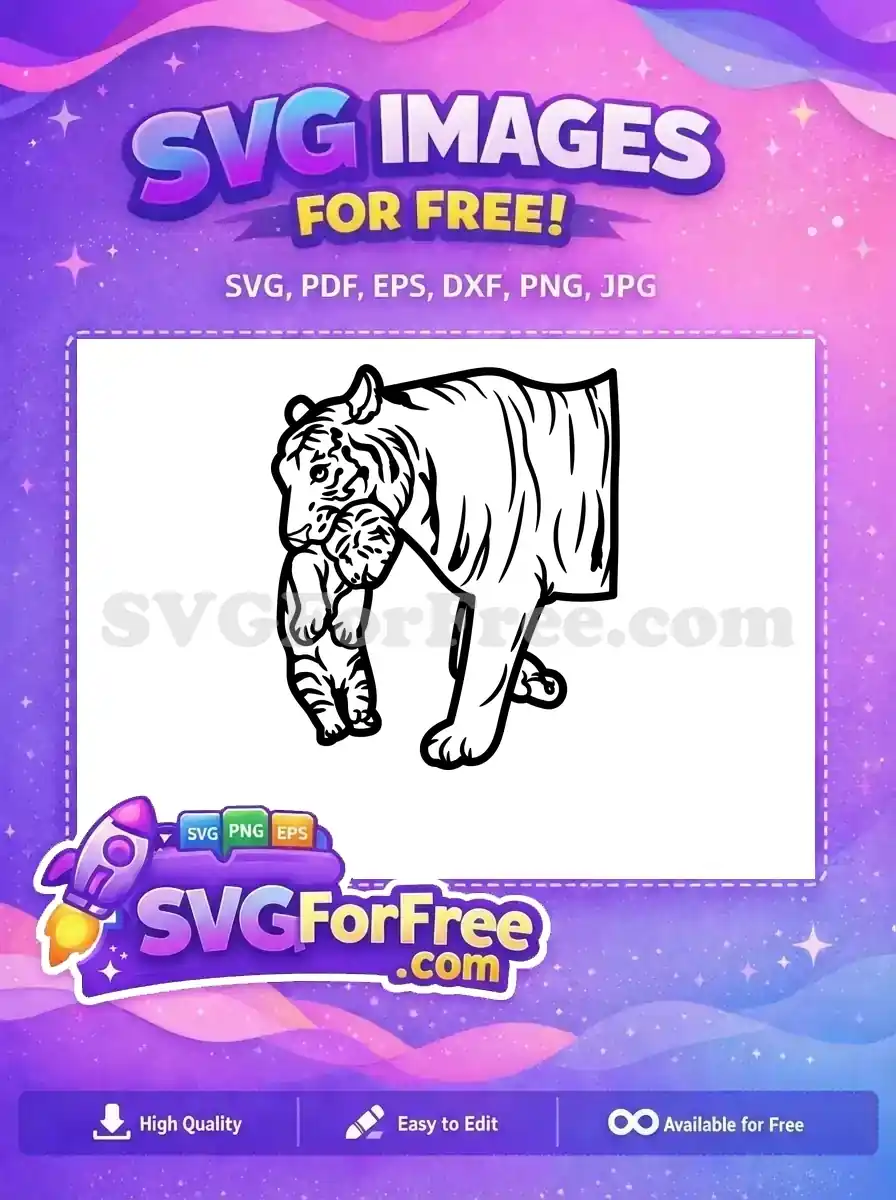 Free Mother Tiger Affection Free Cub Held Tight Free SVG – Instant Download