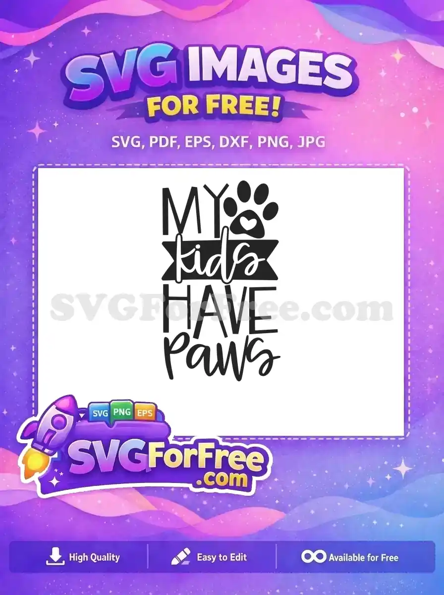 Get this heartwarming ‘My Kids Have Paws’ free SVG design, perfect for pet lovers. A charming free design for crafts and gifts!