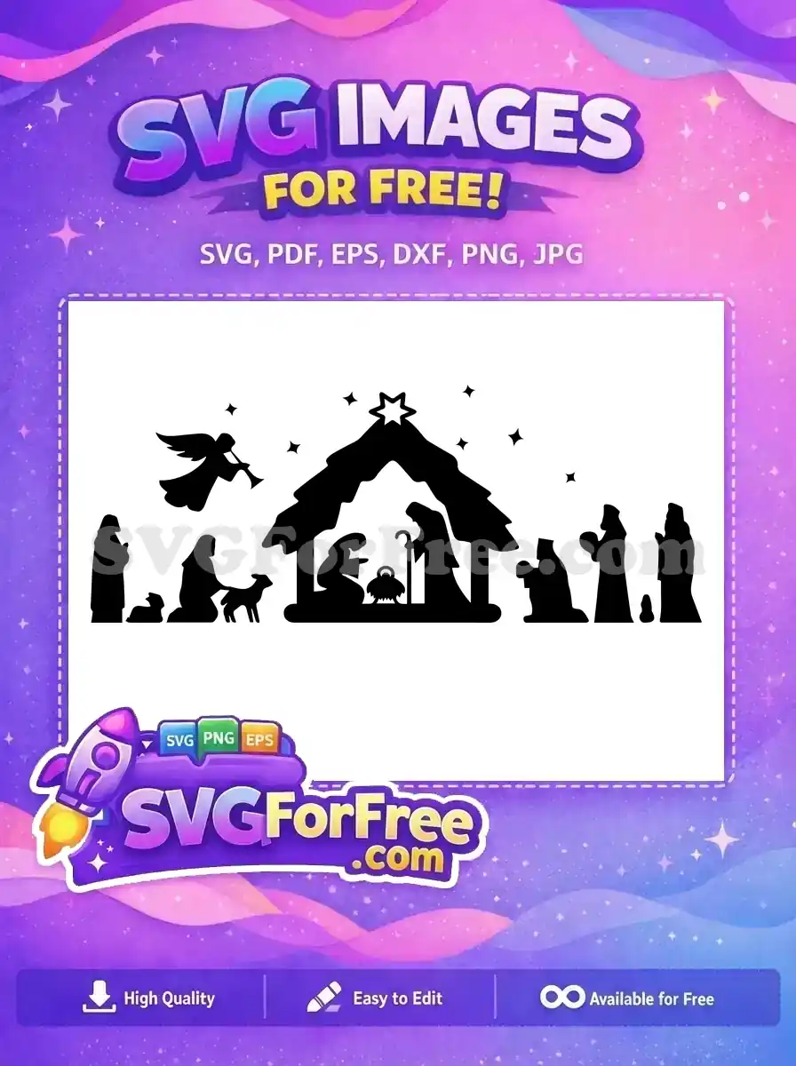 Free Nativity Scene Silhouette Free Angel Stars Christmas Free SVG – Instant Download