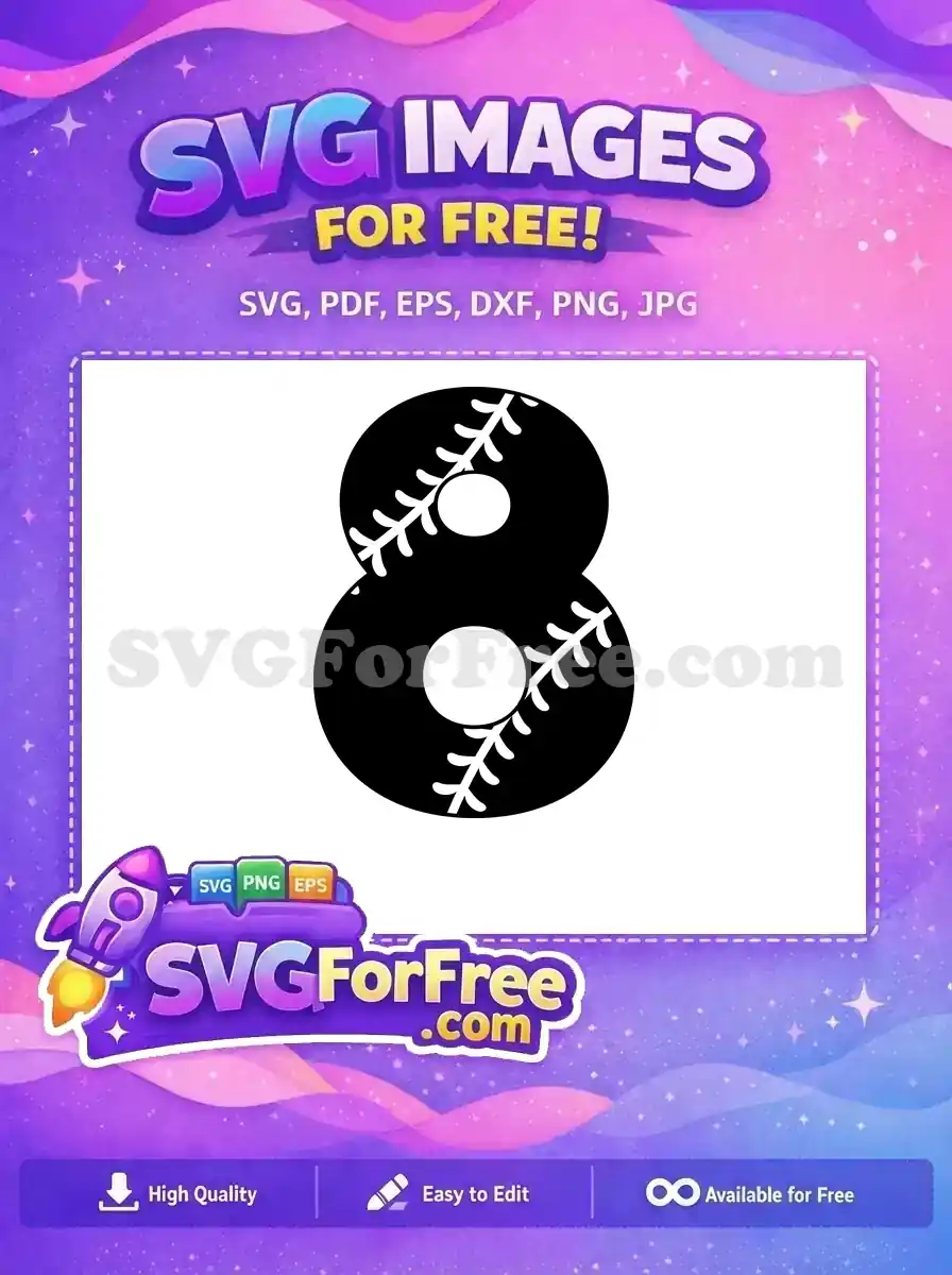 Free Number Eight Free Baseball Black Free SVG – Instant Download