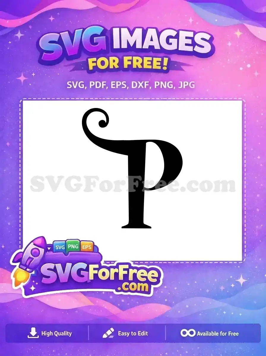 Decorative initial P with a swirled stem, a free graphic for elegant monograms.