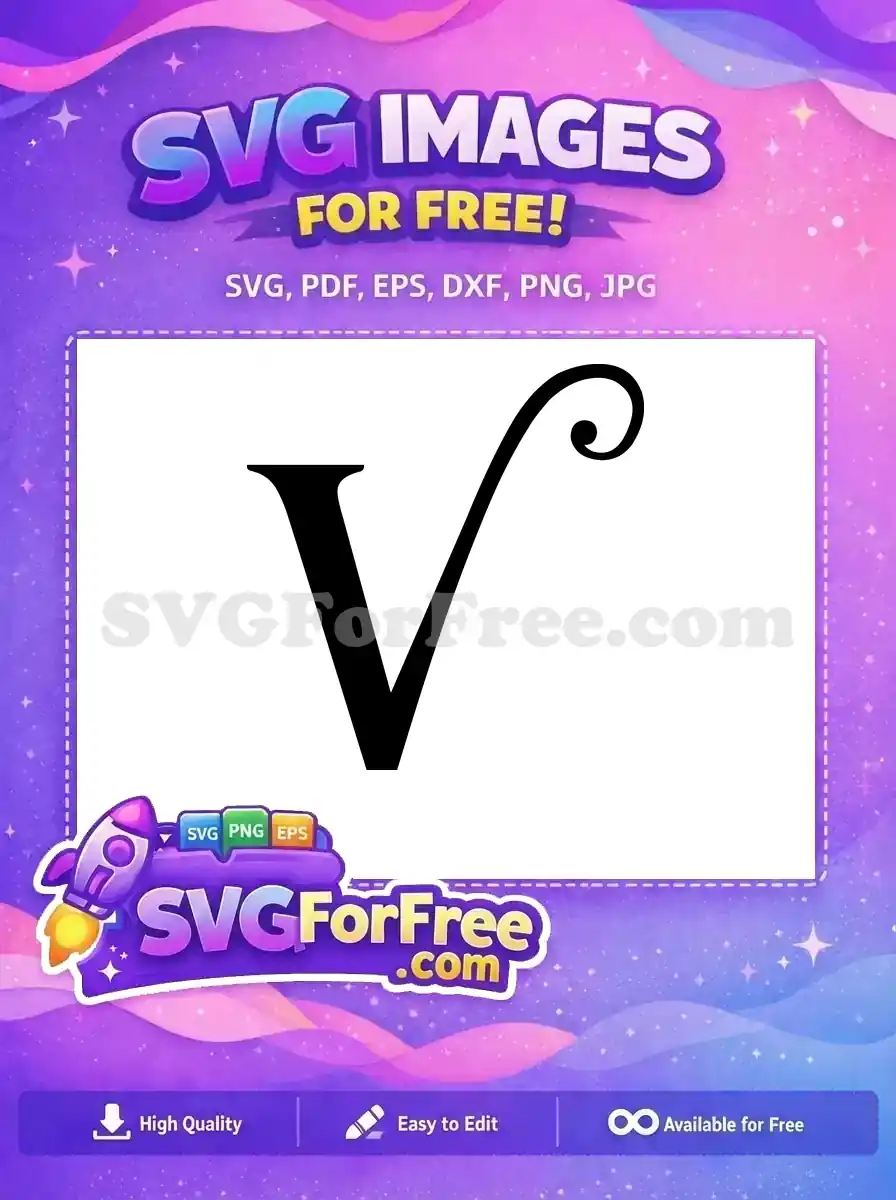 Thin, decorative letter V with a curl, free vector illustration.