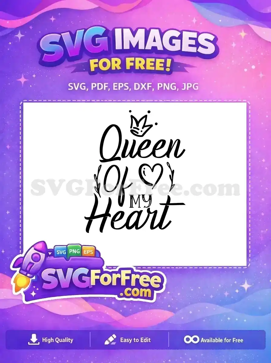 A sweet design that reads “Queen of My Heart” with a crown and heart doodles. A free, affectionate graphic.