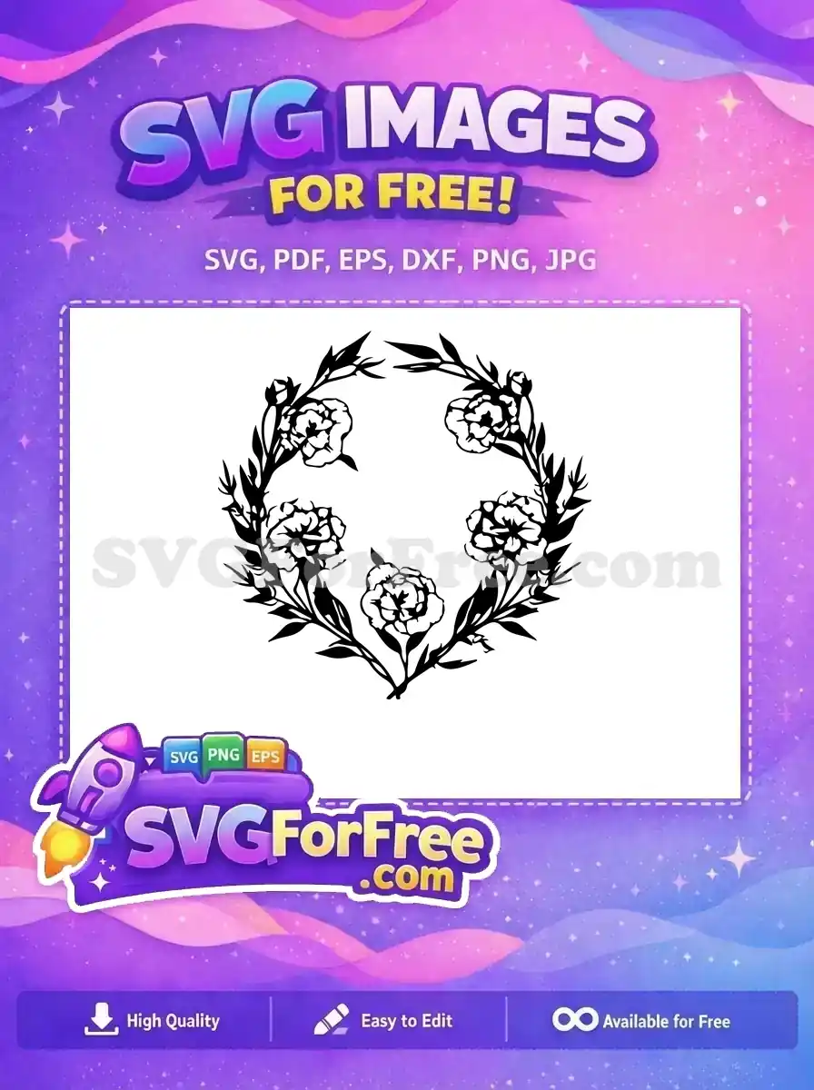 A round floral wreath made of carnations, with a slightly darker, shaded look. A free, bold graphic.