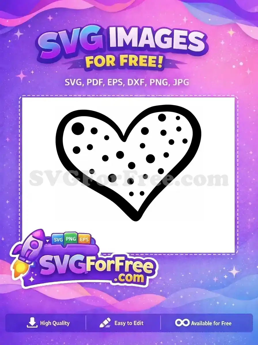 A cute, outlined heart filled with playful polka dots of various sizes. A fun and free design resource.